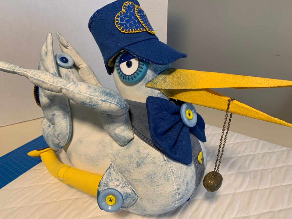 It all began with a few photos I snapped while away. I wanted to recreate the character of that Mexican stork but as a soft, three-dimensional art doll. I wanted him to feel vintage, quirky, and full of personality. Meet my Jabiru soft doll creation.
